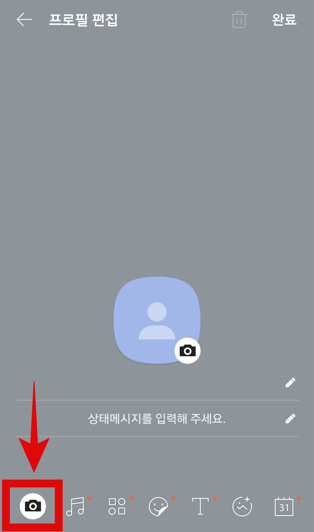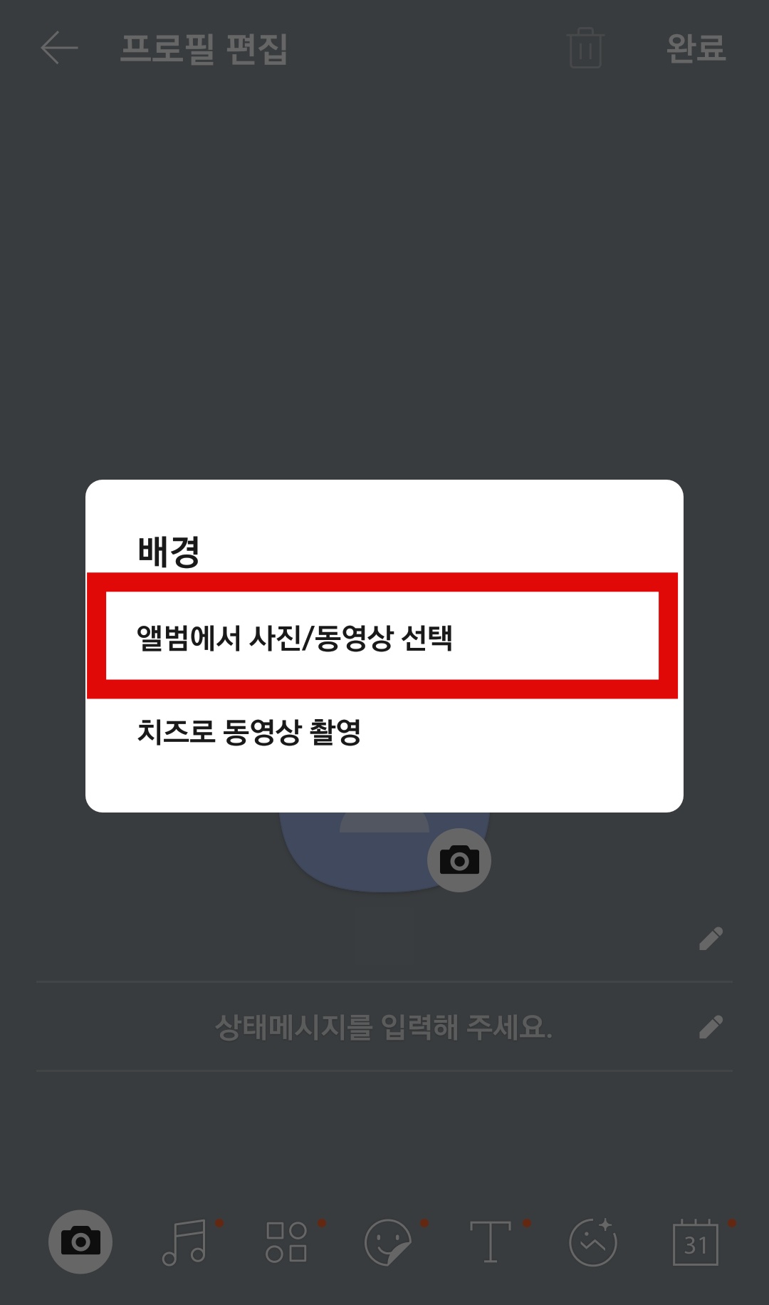 배경사진을 넣기위해 카메라 모양의 아이콘을 눌러봅시다.