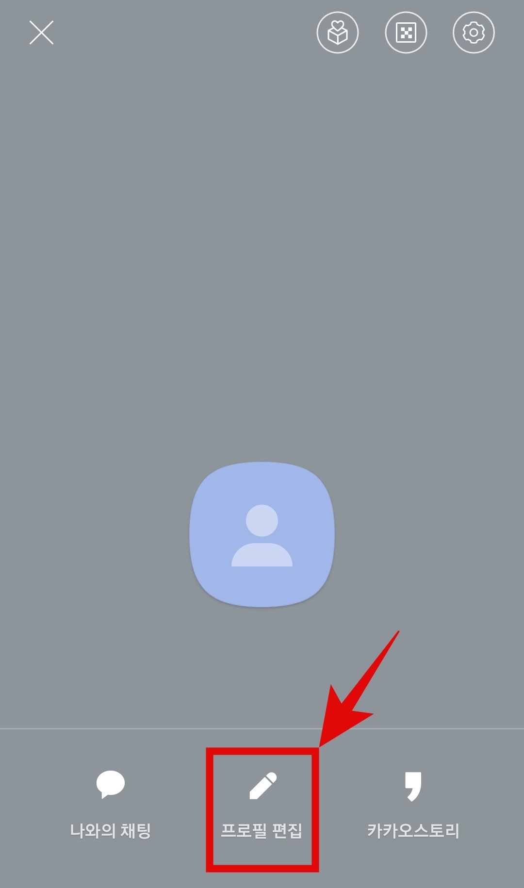 먼저 프로필 입니다. 위와 같이 카카오톡에서 자신의 아이콘을 누르면 보이게 되는 화면인데, 나 뿐만 아니라 다른 사람이 눌렀을때 보여지는 부분이기 때문에 좀 더 신경써서 꾸며주는 것이 좋겠죠?
