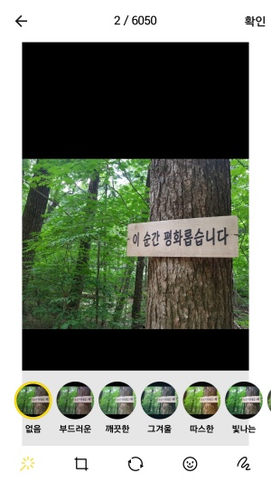 필터 기능이 있어서 이미지를 좀 더 화사하고 선명하게 꾸며 줄 수 있습니다. 한번씩 설정해 보시고, (확인)을 눌러 완료해 줍니다.
