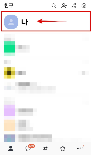 먼저 자신의 사진을 눌러 프로필 페이지를 엽니다. 그리고 아래에 있는 (편집)버튼을 눌러줍니다. 이곳에서 자신의 이름 및 배경사진, 각종 꾸미기 기능을 수행할 수 있습니다.