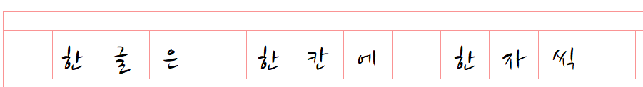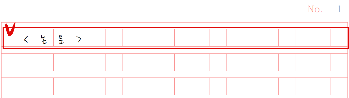 한글을 작성하는 경우 위와같이 원고지 한칸에 한글자씩 넣어서 작성해 주시면 됩니다.