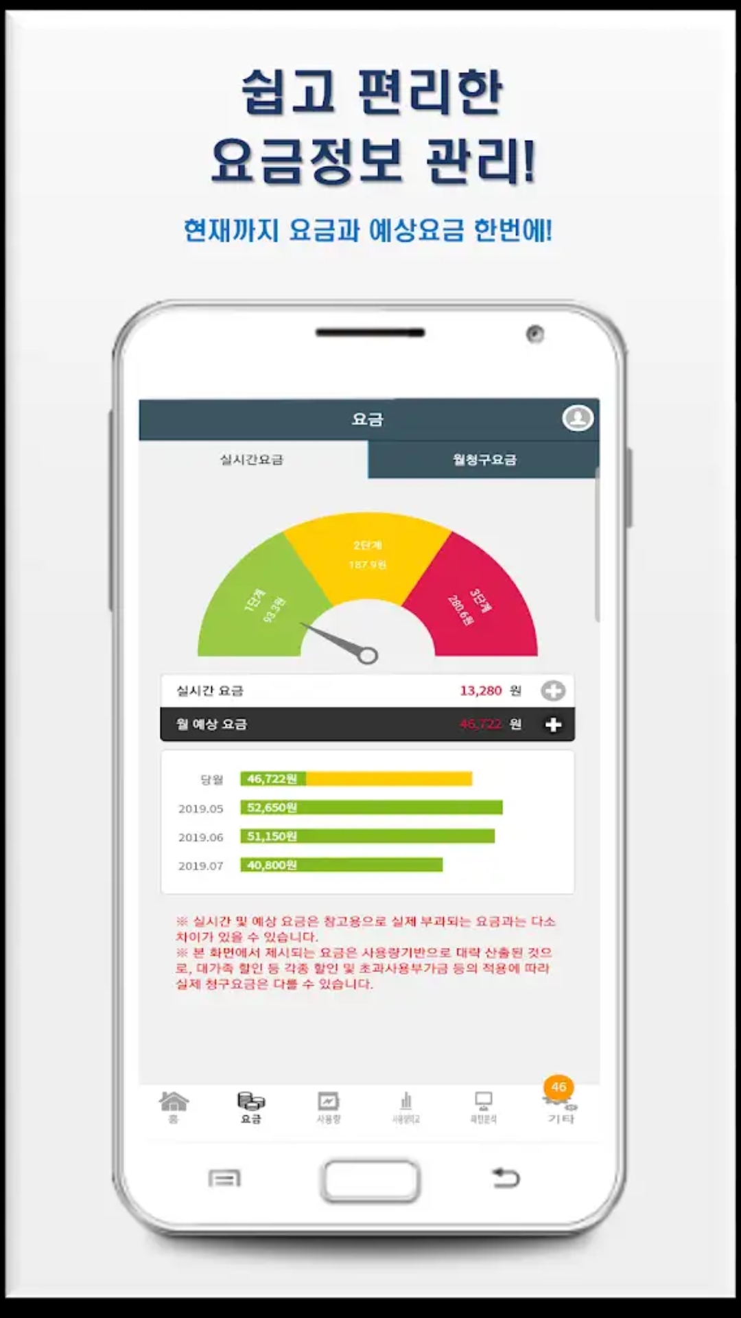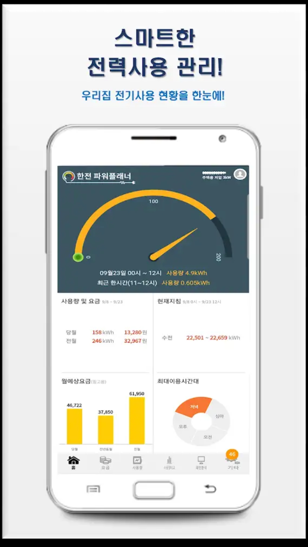 한국전력공사(KEPCO)에서 제공하는 앱이며, 가정의 전기사용 현황 및 현재까지의 요금, 예상 요금을 확인해 볼 수 있습니다. 안드로이드의 경우 구글 플레이스토어, 아이폰의 경우 앱스토어에서 받으실 수 있습니다.