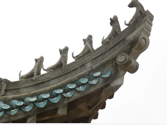 좌측에 있는 그림은 요즘에 흔히 볼 수 없는 "멧돌"이고, 우측은 궁궐 등의 처마 입니다. 여기서 주목할 점은 멧돌 위에 박혀있는 손잡이와 처마위의 인형들 입니다.