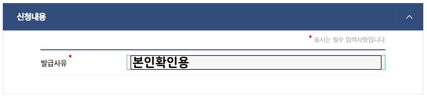 발급 사유에 대해서는 목적에따라 취득일 (발급일) 확인으로 입력하시거나 본인확인용으로 작성하셔도 됩니다.