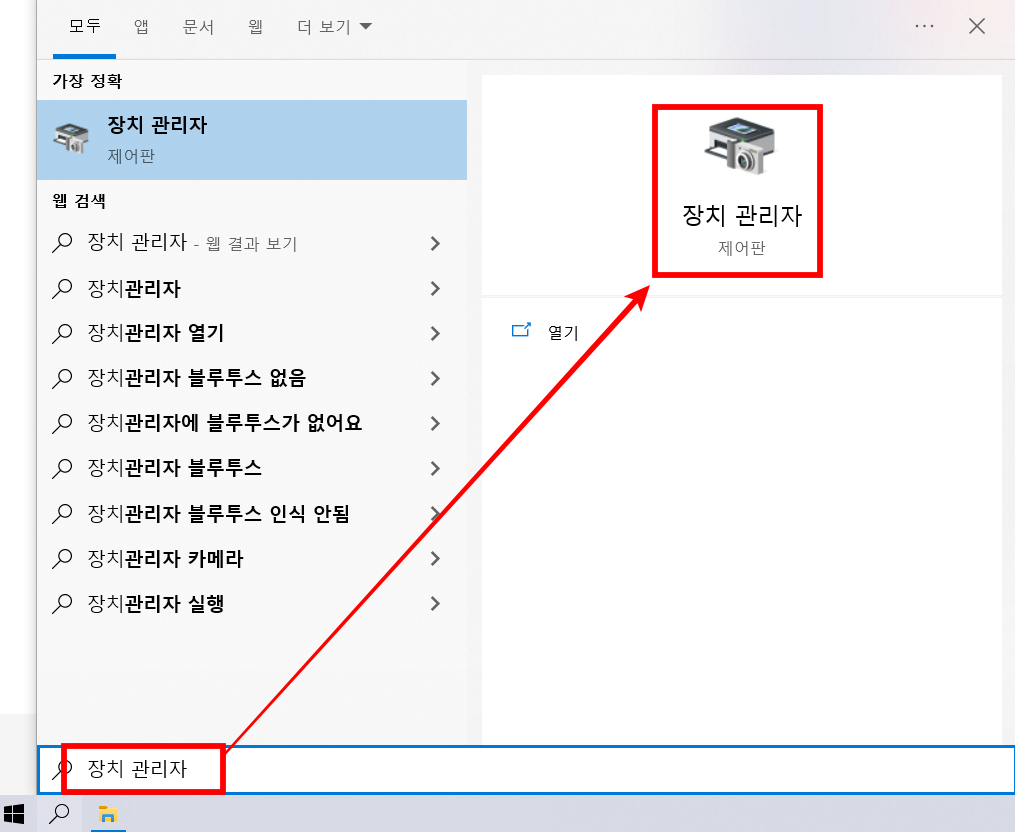 아까와 동일하게 작업표시줄 돋보기 검색창에 장치 관리자를 검색하셔서 진입합니다.