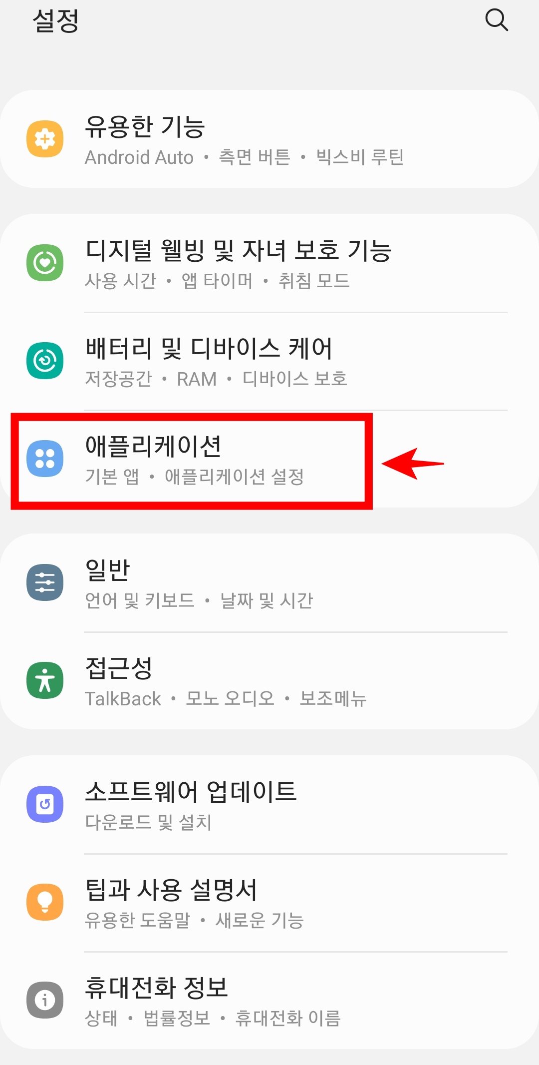 안드로이드 기준으로 모든 핸드폰에는 (설정)앱이 있는데요, 들어가게 되면 (애플리케이션) 항목이 있습니다.
