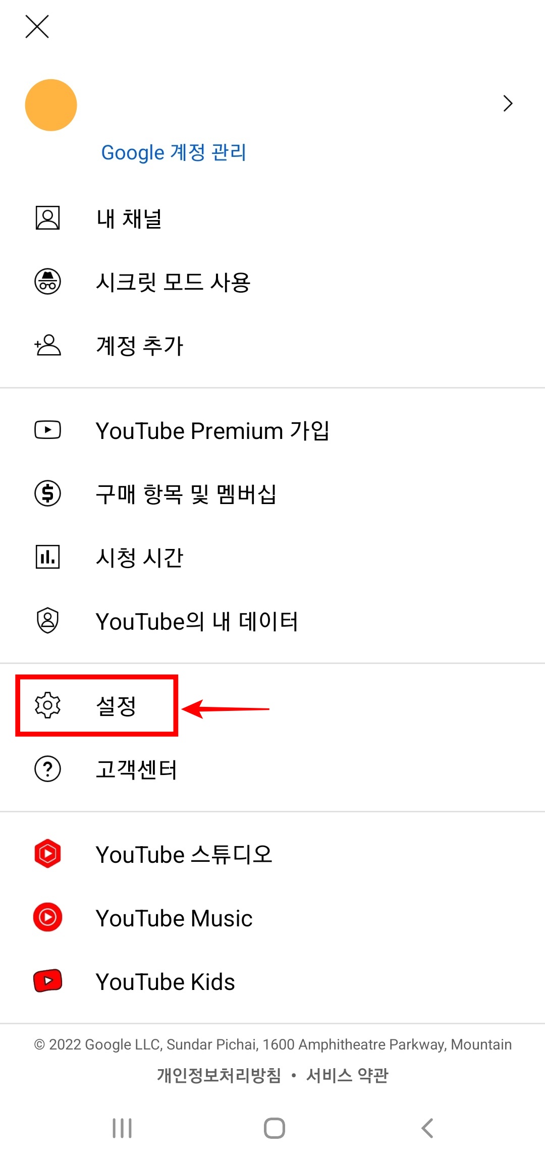 메뉴 항목들 중에서 (설정)으로 진입합니다.